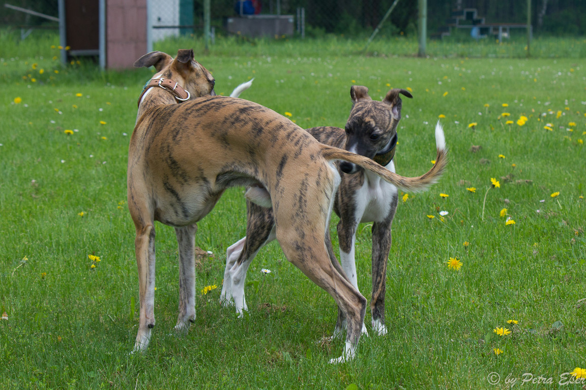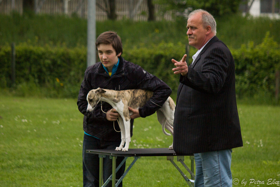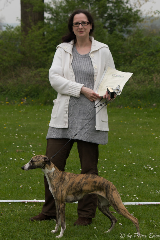 Schön war es, unser Familientreffen am 1. Mai 2013. Insgesamt waren wir 22 Menschen und 19 Hunde, davon 17 Whippets. Wie immer war es sehr lustig sowohl für die Zwei- als auch für die Vierbeiner. Familie Mode hatte alles super organisiert und somit gab es reichlich Kuchen und Getränke, eine super Location und genügend Zeit und Muße für regen Austausch und für ein kleines Ringtraining mit anschließender Quasi-Ausstellung. Gewonnen haben wir alle, schließlich waren doch schließlich nur die Kinder der Mode-Hunde Duncan, Simon und Henry am Start. Gewonnen haben wir auch wieder neue Erfahrungen und Kontakte. Und Sieger der Herzen sind wir bei unseren Menschen eh!